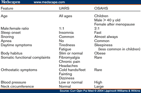 UARS is best described on the spectrum as the progression from snoring towards OSA. However, the presentation of UARS is unique. Unlike OSA or OSAHS, UARS presents in women and men equally and can be found more in thin or normal body structured individuals.